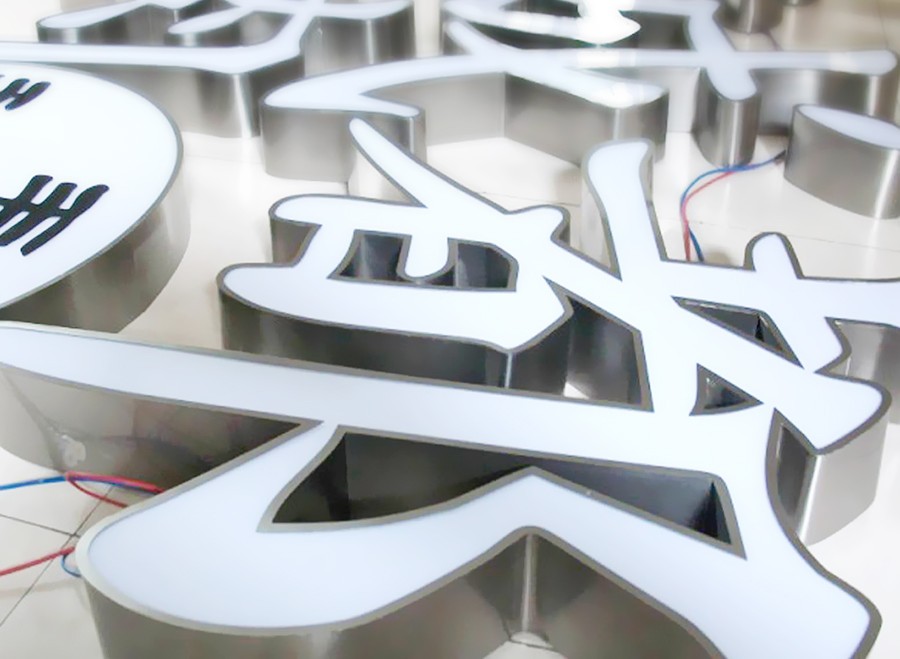 因于樹脂字制作成本高,且室外樹脂字的工藝缺陷,使其戶外使用容易發(fā)黃、變色。為了解決這一難題,于是延伸出了不銹鋼無邊字產(chǎn)品。無邊字繼承了樹脂字的有點(diǎn),無論晚上還是白天一樣的顯示效果,而且相對(duì)樹脂字不褪色、易維護(hù)、成本低,更適合戶外使用。